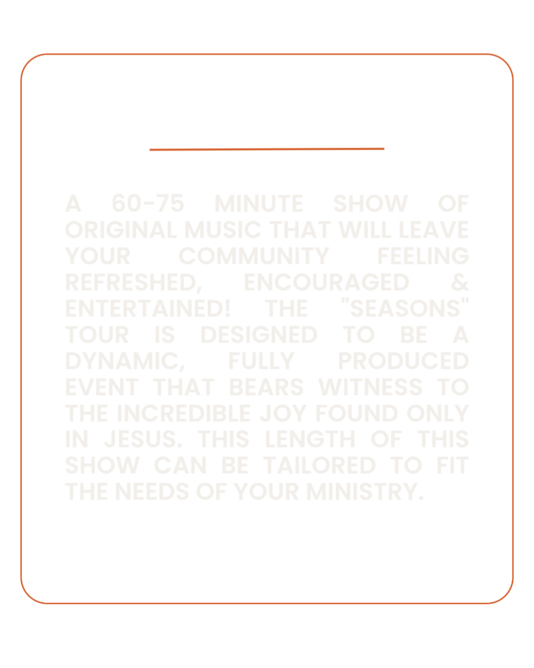 THE SEASONS TOUR IS NOT JUST A CONCERT — IT'S AN OPPORTUNITY TO GIVE YOUR COMMUNITY AN ENCOUNTER WITH HOPE IN A WORLD DROWNING IN ANXIETY AND FEAR.